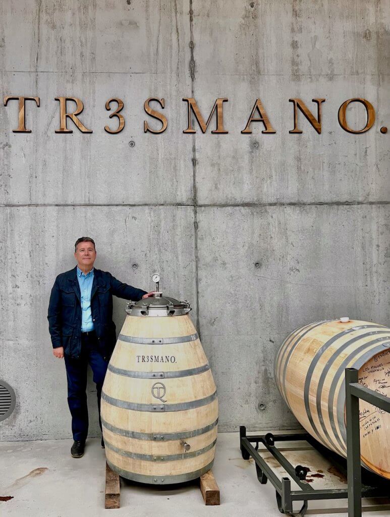 Acompañados por Lucía Mencía del Departamento Comercial y por su director general, Pedro Aibar, los miembros de la Asociación de Periodistas y Escritores del Vino, a la que pertenezco, disfrutamos de una maravillosa visita y una cata magistral con seis vinos de la Bodega Tr3smano que reflejan el carácter de dos grandes regiones vinícolas hermanadas por el río Duero: la Ribera del Duero y el Douro portugués.