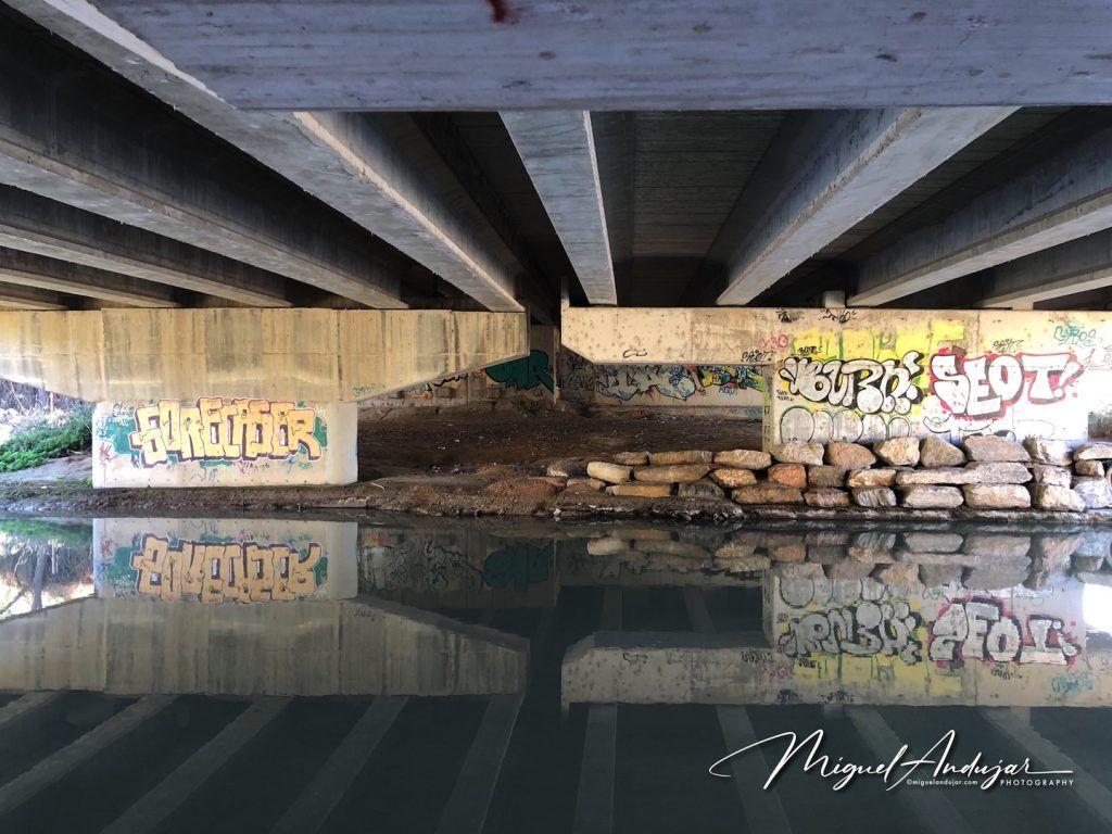Tras dos kilómetros aproximadamente, se llega al punto donde se unen los dos cauces. Allí se encuentran dos grandes compuertas por las que se alimenta el último tramo del antiguo Río Segura.