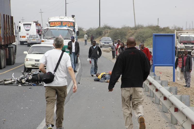 Un grave accidente el primer día, al cruzarse en nuestro camino una moto, nos alertó de que el mayor peligro de Kenia no está en sus animales salvajes, sino en la carretera, por donde se circula de una forma caótica.